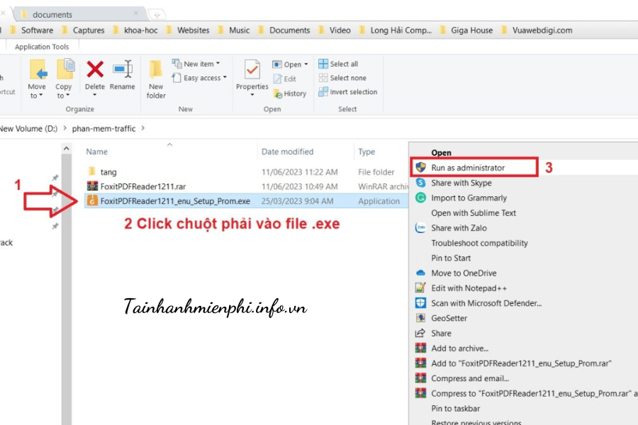 - Chạy file .exe dưới quyền admin (Run as administrator).