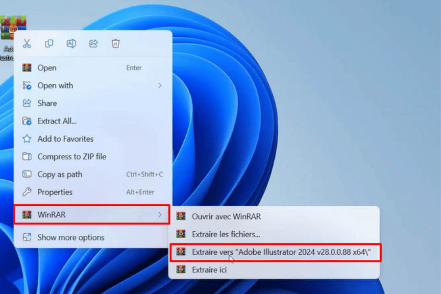 Bước 1: Giải nén file cài đặt Adobe Illustrator 2024.