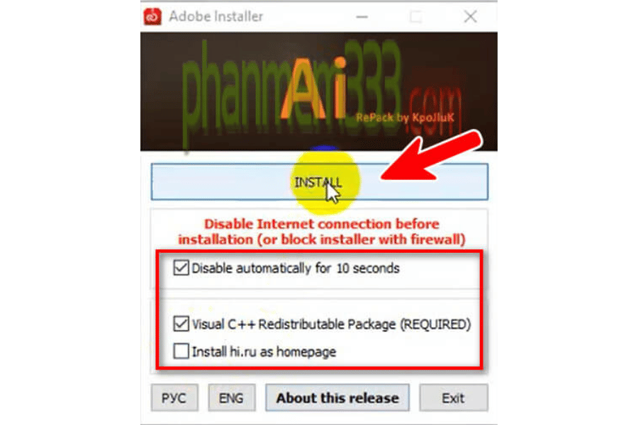 Bước 4: Giao diện cài đặt hiện ra, tích chọn tùy chọn hiển thị rồi bấm “Install”.