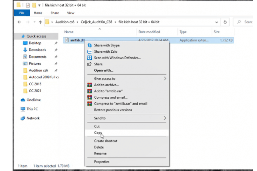 Mở thư mục Crack trong file tải về, copy các file trong thư mục này.