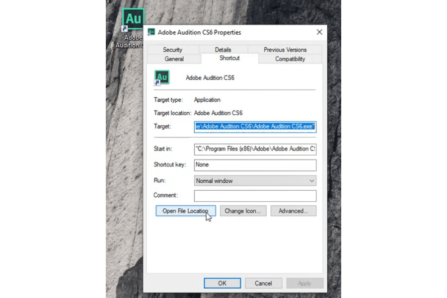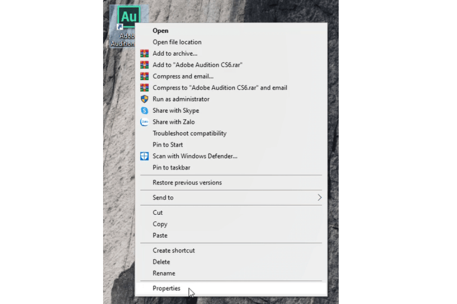 Bấm chuột phải vào biểu tượng Adobe Audition CS6 và chọn Properties.