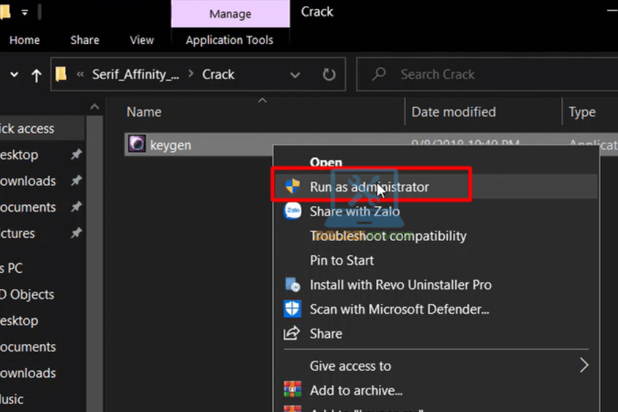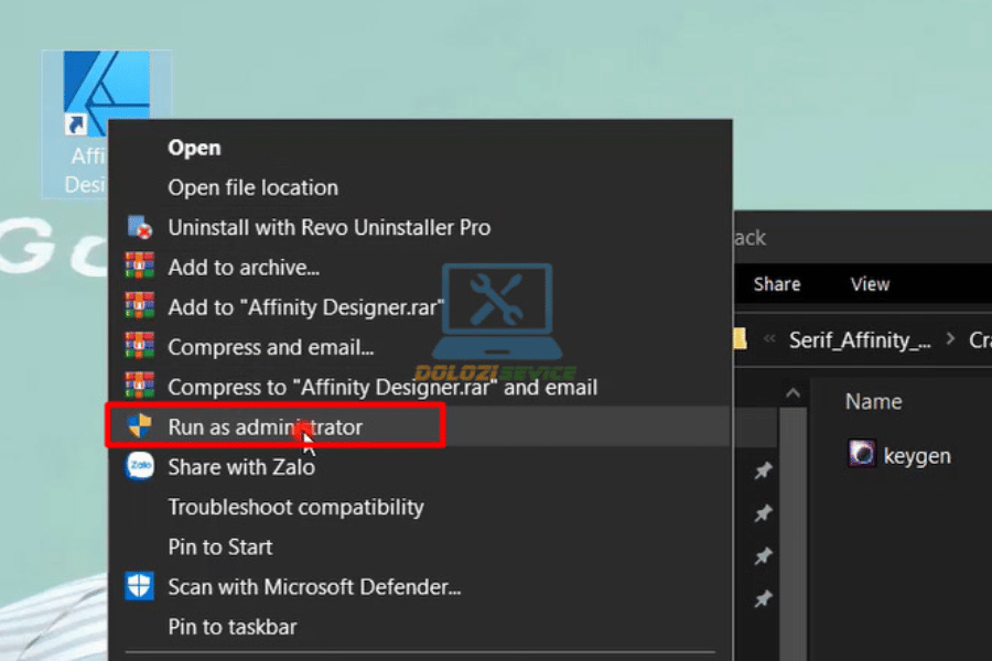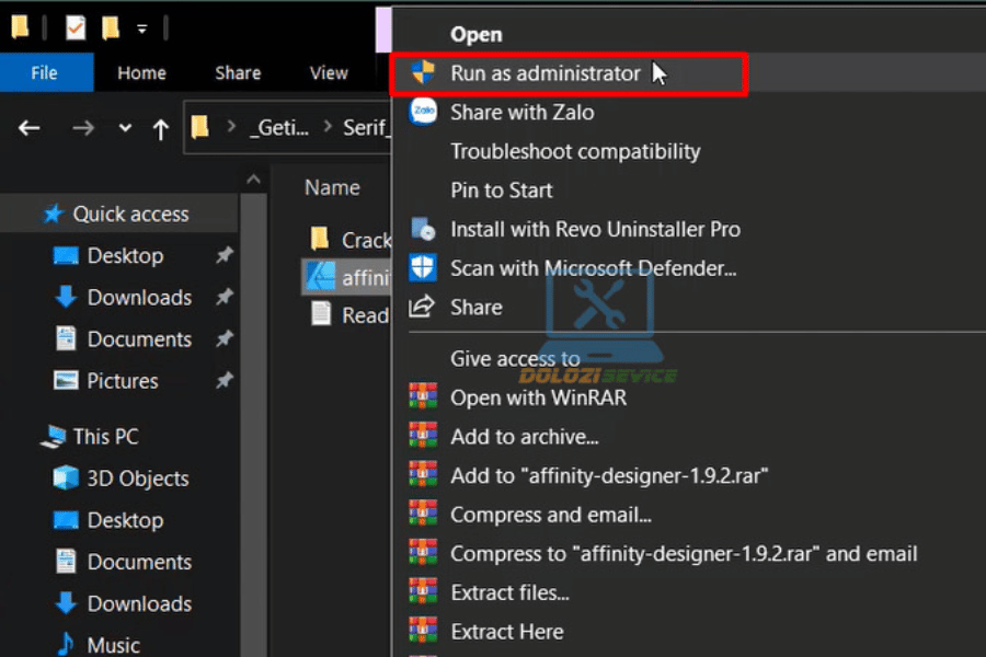 Bước 2: Truy cập thư mục vừa giải nén, tìm và chạy file affinity designer 1.9.2.exe.
