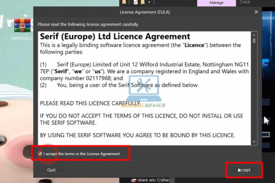 Bước 6: Tích chọn “I accept the license terms” rồi nhấn Accept.