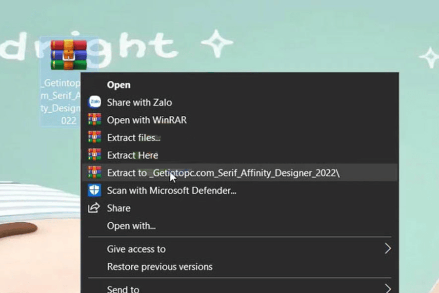 Giải nén file cài đặt ra desktop hoặc ổ đĩa C, không chạy trực tiếp từ file nén
