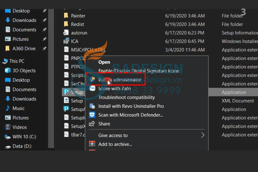 Bước 3: Chuột phải vào file setup.exe → Chọn Run as administrator.