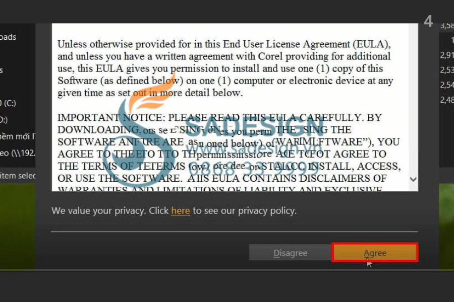 Bước 4: Khi cửa sổ cài đặt mở ra, chọn Agree để đồng ý điều khoản.