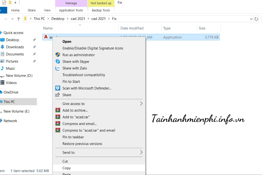 Bước 3: Mở thư mục chứa file crack, sao chép tệp acad.