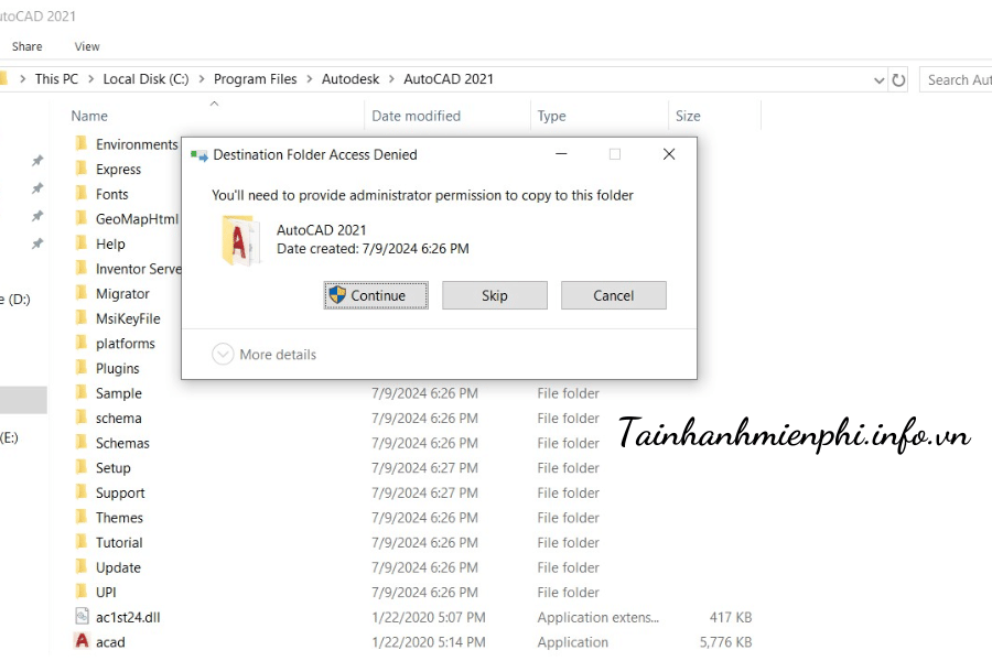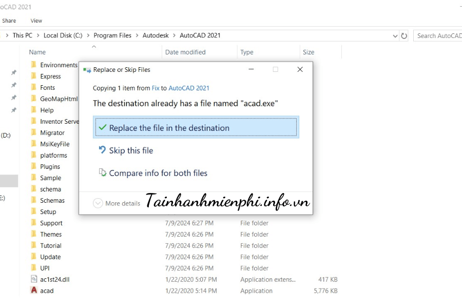 Dán tệp acad vào đây và chọn “Replace the file in the destination”.