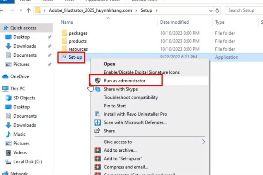 Nhấn chuột phải vào file Setup.exe và chọn Run as administrator để bắt đầu quá trình cài đặt.