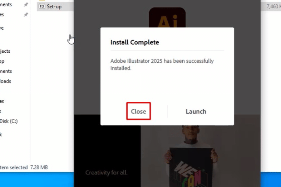 Tải phần mềm Adobe Illustrator 2025 về máy tính và giải nén file cài đặt.