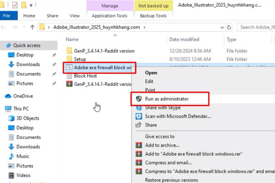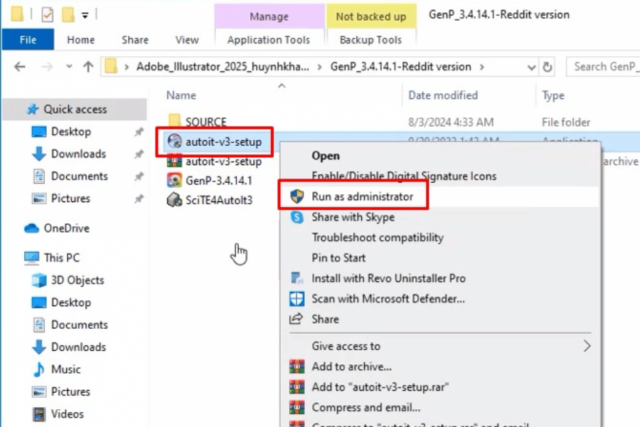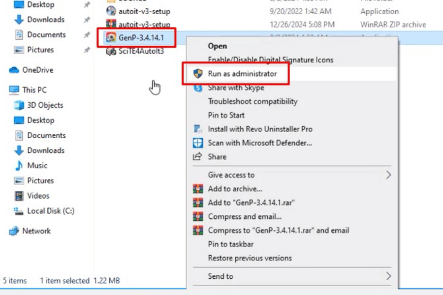 Quay lại thư mục GenP-3.4.14.1 và chọn Run as admin.