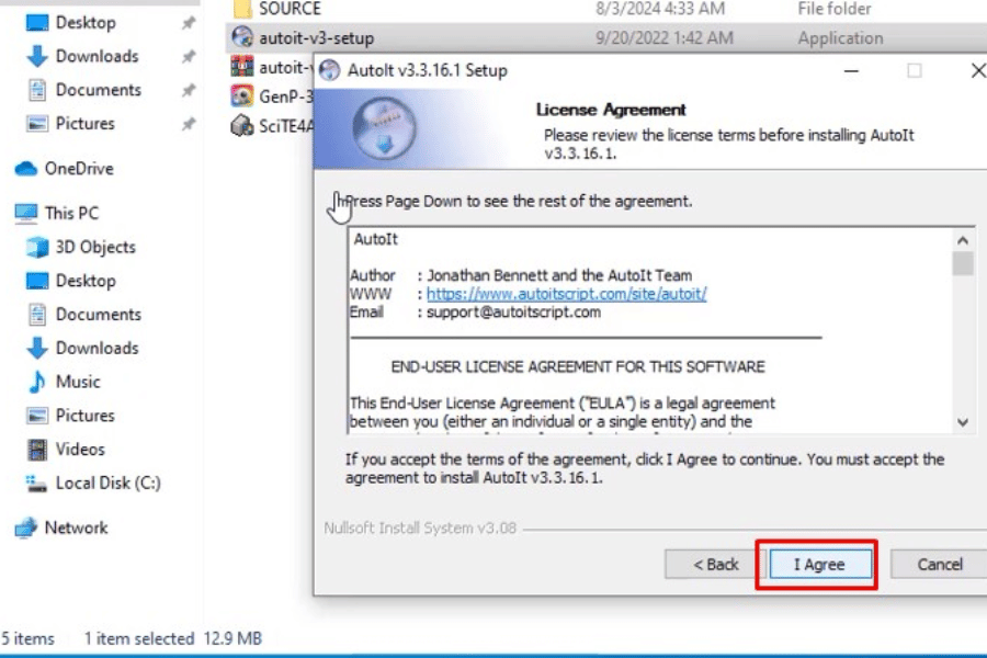 và I Agree để tiếp tục cài đặt AutoIt.