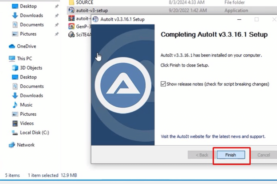 Chạy file autoit-v3-setup và chọn Run as admin.