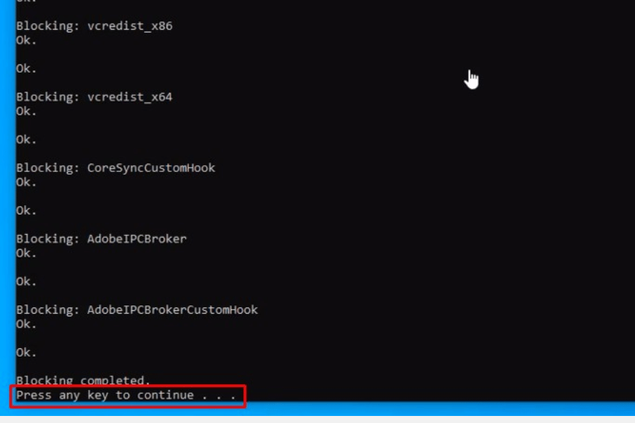 Sau khi hoàn tất quá trình kích hoạt, nhấn một phím bất kỳ để hoàn tất cài đặt.