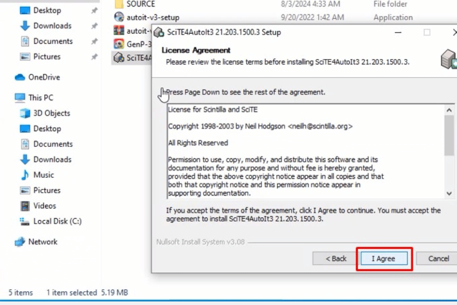 và I Agree để tiếp tục cài đặt AutoIt.