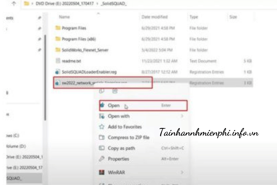 - Giải nén file cài đặt SolidWorks 2022 sau khi tải về.