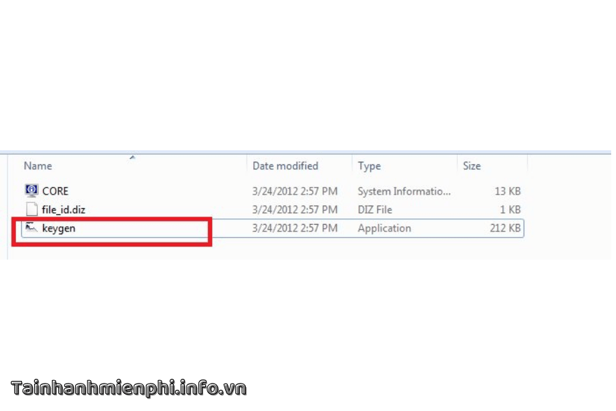 Keygentrong thư mục giải nén ban đầu và chạy filekeygen.exe.