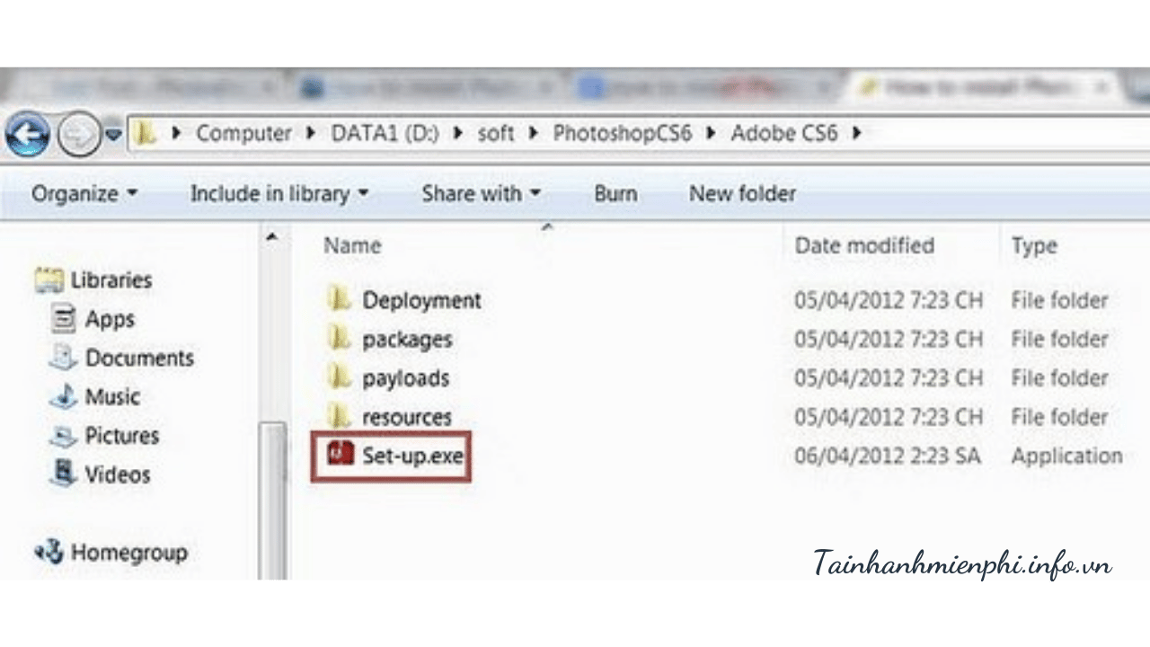 - Chạy file “Set-up” trong thư mục “Adobe CS6”.