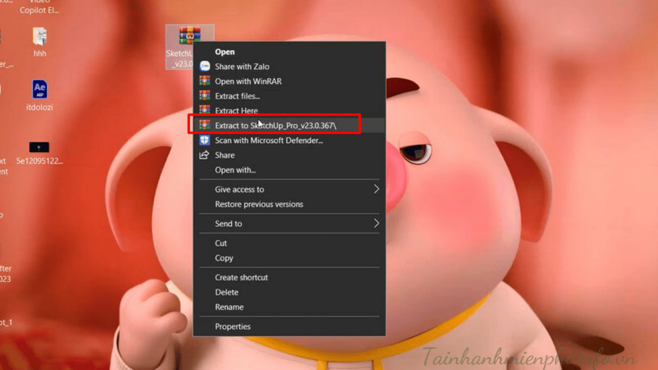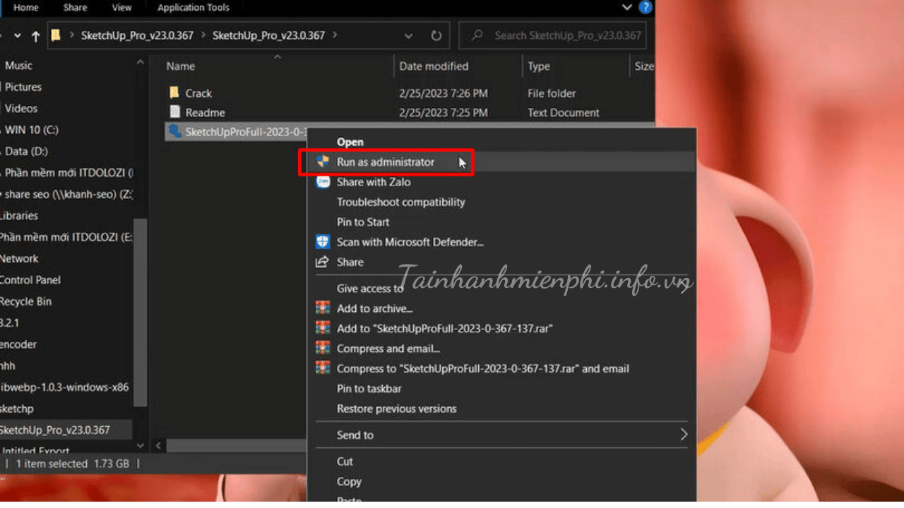 Tìm đến file nén Sketchup 2023 mà bạn đã tải về.