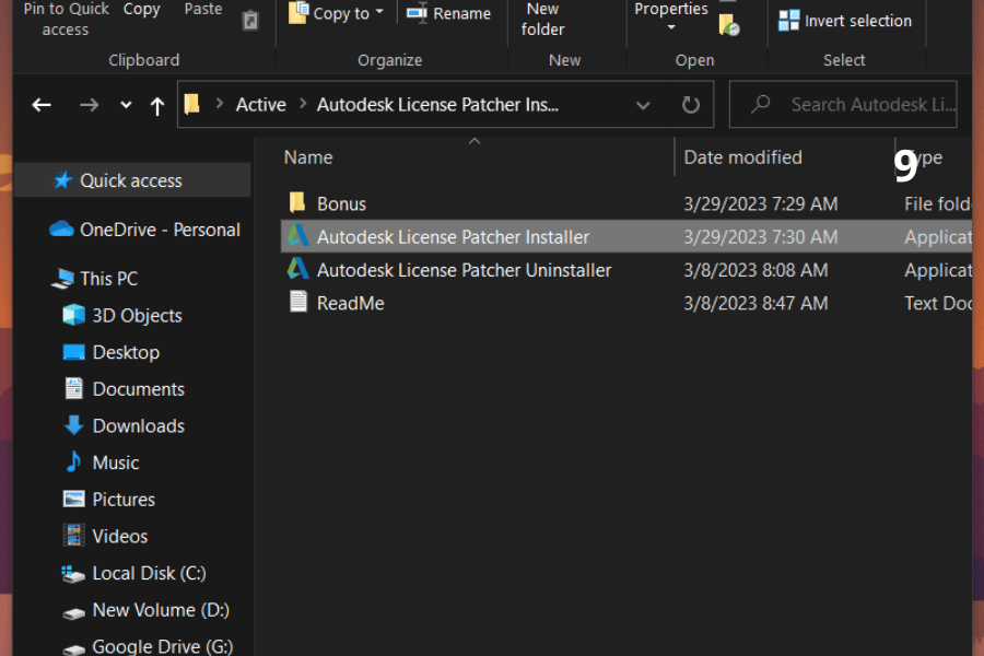 Bước 8: Mở thư mục “Active”, chạy file “Autodesk License Patcher Installer” với quyền admin.
