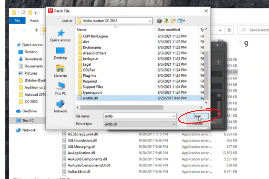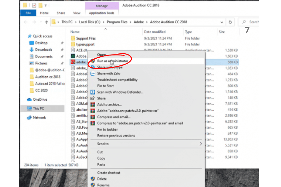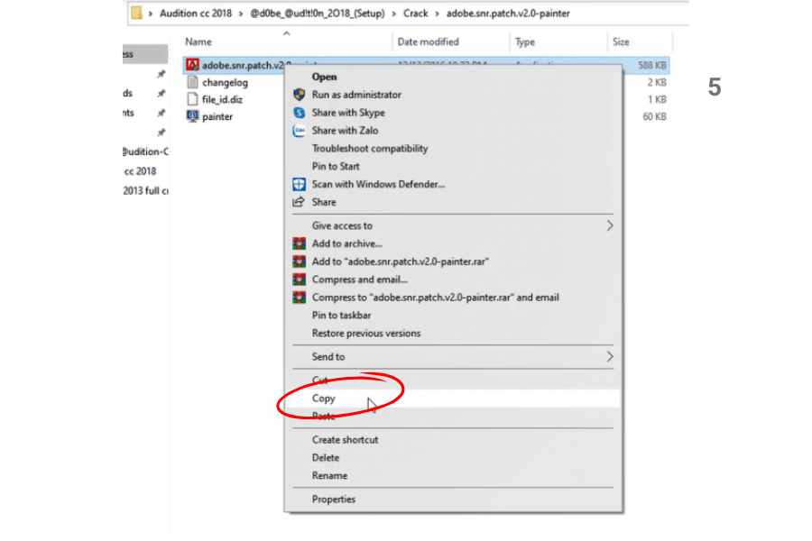 Bây giờ, bạn đã ở trong thư mục cài đặt Adobe Audition CC 2018. Quay lại thư mục Crack, copy file