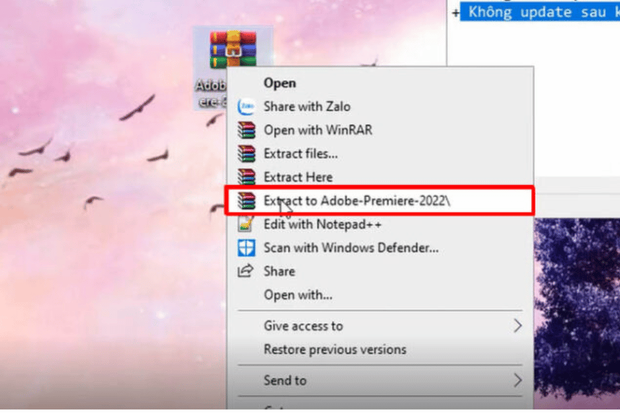 Giải nén file cài đặt Adobe Premiere Pro 2022 từ thư mục đã tải xuống.