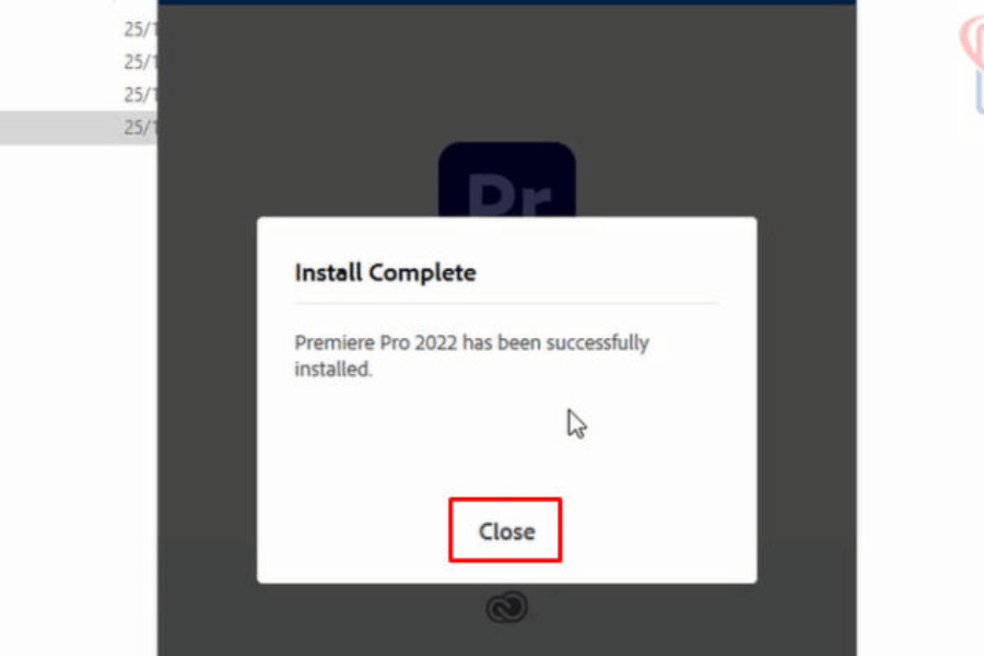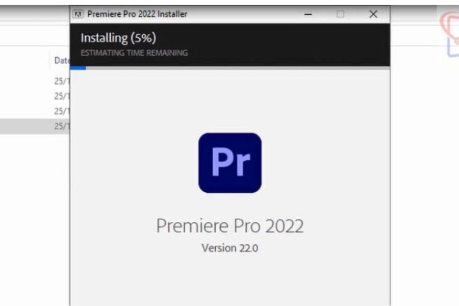 Chờ trong vài phút cho phần mềm Adobe Premiere Pro 2022 được cài đặt. Quá trình này sẽ mất một thời gian ngắn tùy thuộc vào cấu hình máy tính của bạn.