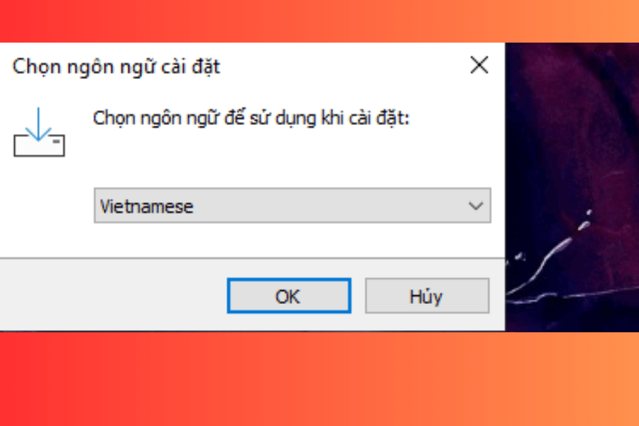 Bước 4: Chọn ngôn ngữ Tiếng Việt, nhấn OK.