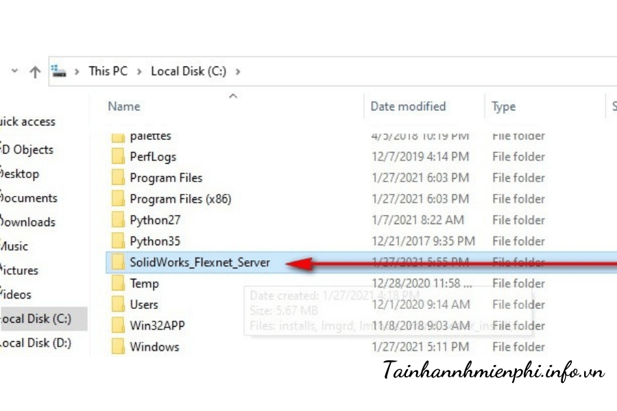 - Sao chép thư mục “SolidWorks_Flexnet_Server” vào ổ C: của máy tính.