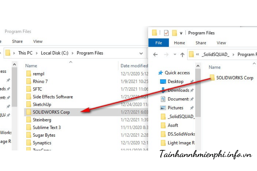 - Sao chép thư mục: Sao chép thư mục “SOLIDWORKS Corp” vào đường dẫn C:\Program Files trên máy tính.